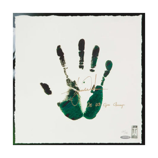 Litografía Tegata verde y negra autografiada por Tiger Woods – Inscripción ‘08 U.S. Open Champ’
